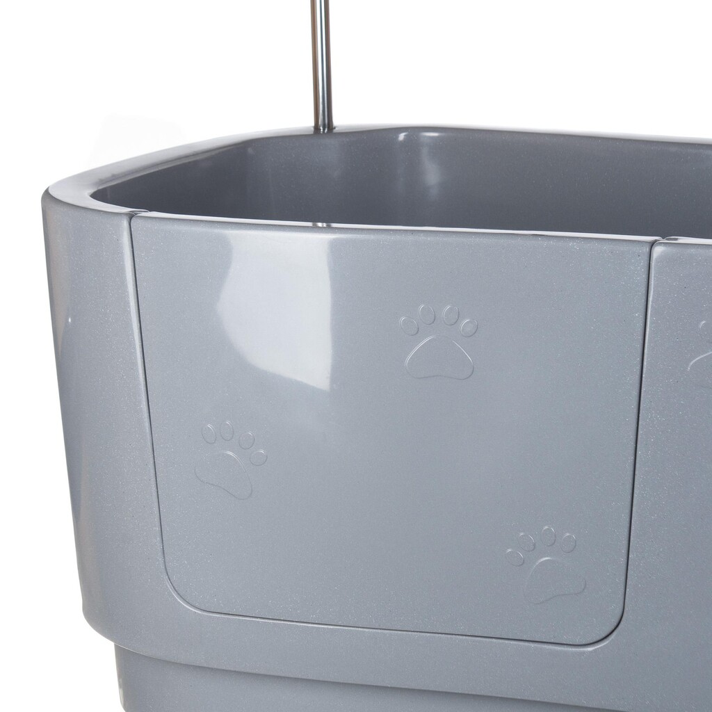 This electric dog bath with lift is perfect for both small and large pets and simplifies bathing, grooming and care. The bath is equipped with a removable plastic shelf that makes it easy to handle even smaller animals, as well as a side door for comfortable entry.